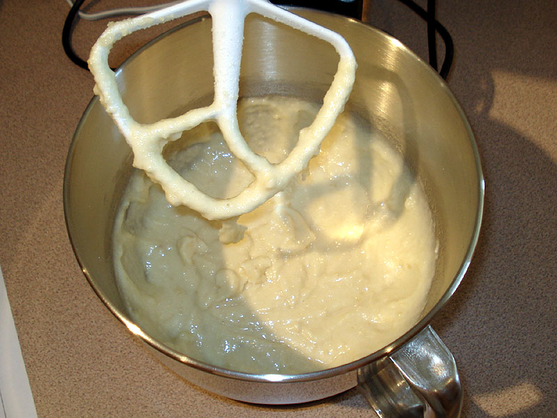 ** Add enough egg whites to make the batter slightly liquid. |