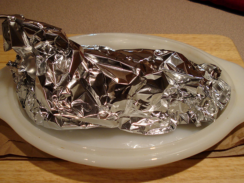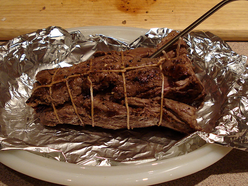 Cover and let the roast rest for 10 minutes. Leave the thermometer in (if you remove it the juices may run out of the hole)
