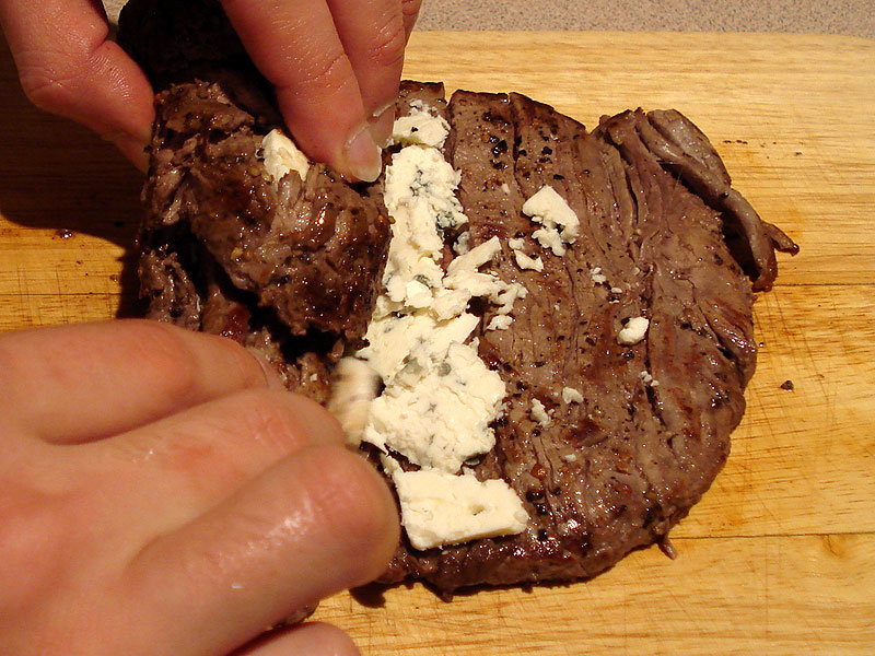 Cut open the roast and you should be rewarded with creamy oozing blue cheese.