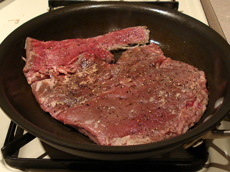 Brush the meat with oil, then sear in the pan for 2 minutes.