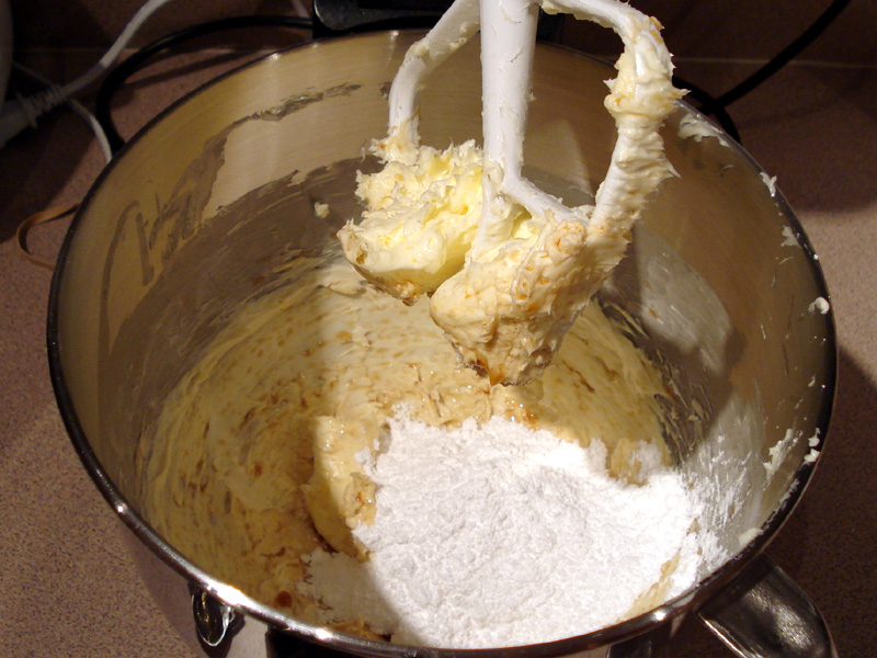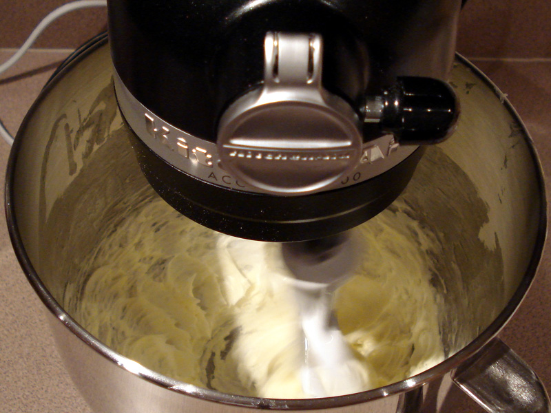 Cream the butter by mixing it for a couple minutes until smooth and fluffy.