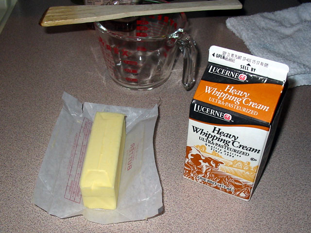 Before you start, decide where you are going to keep the sauce. I use canning jars which I wash in hot soapy water. Since this is caramel and not preserves you don't have to be quite as meticulous in keeping it sterile since the high sugar content will keep most bacteria at bay. In fact, I haven't seen any of my caramel sauce grow anything, but I have seen the butter go stale.