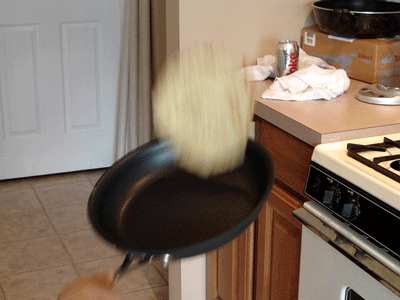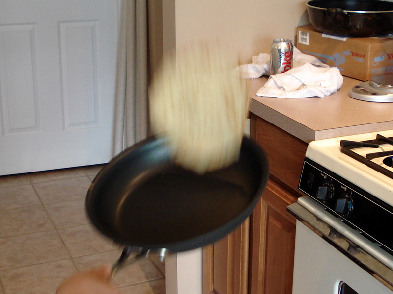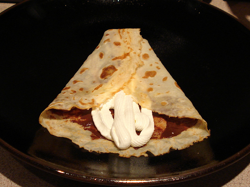Flip the crepe, either with a spatula or, if you want to be cool, flip it in the air. Here's a fun action image.