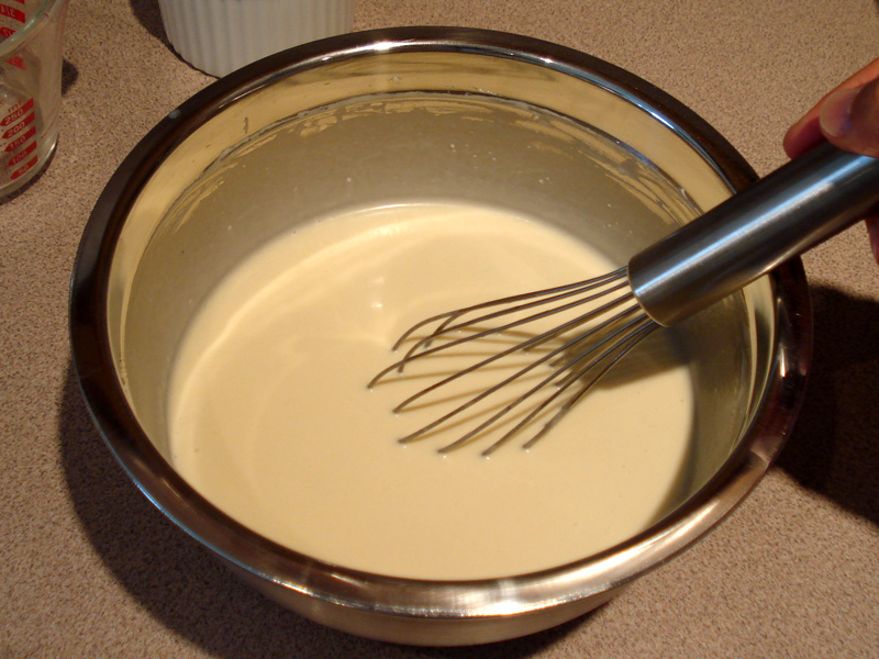 Your batter should be pretty runny but smooth and it should not have too many bubbles.