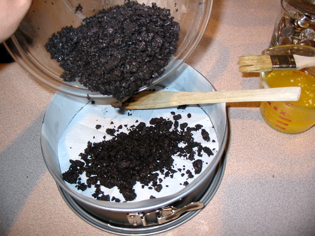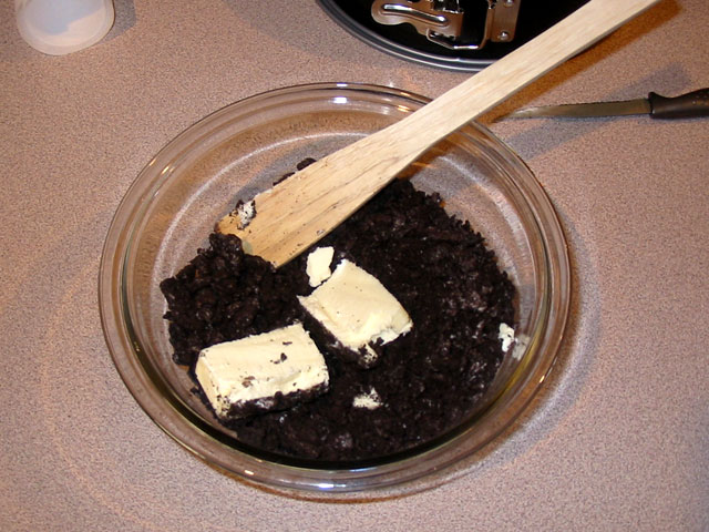 Mix the butter and crumbs until uniform, then pour the mixture