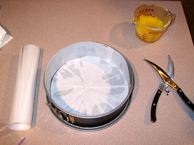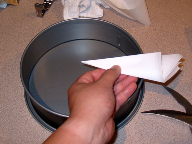 First prepare your pan. The easiest way is to use parchment paper.