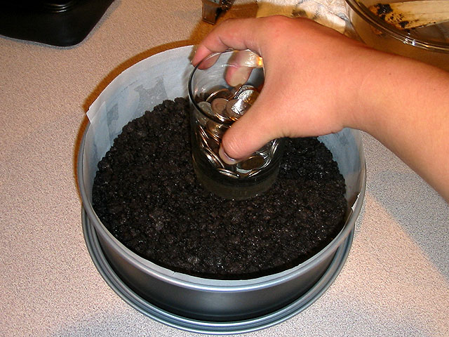 Tamp the crust down so it's uniform using a flat bottomed glass