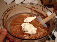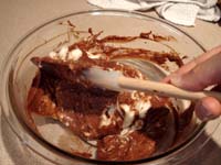 Whisk the ganache so it is soft and easy to mix. If you wish you can nuke it for 15-20 seconds to soften it.
