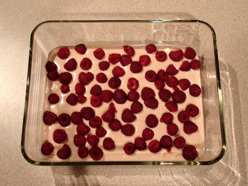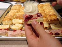 | Here is the Berry Bavarian that I made (strawberry cream with rasberries). The pastries are halved since I was making it for a lot of people. |