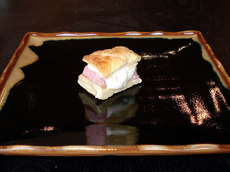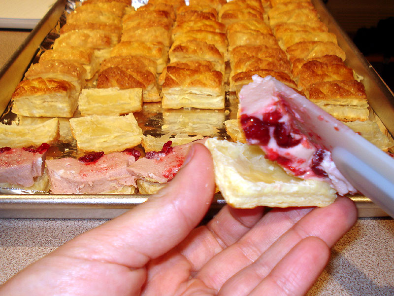 | Cut the bavarian cream into squares that will fit the pastry. |