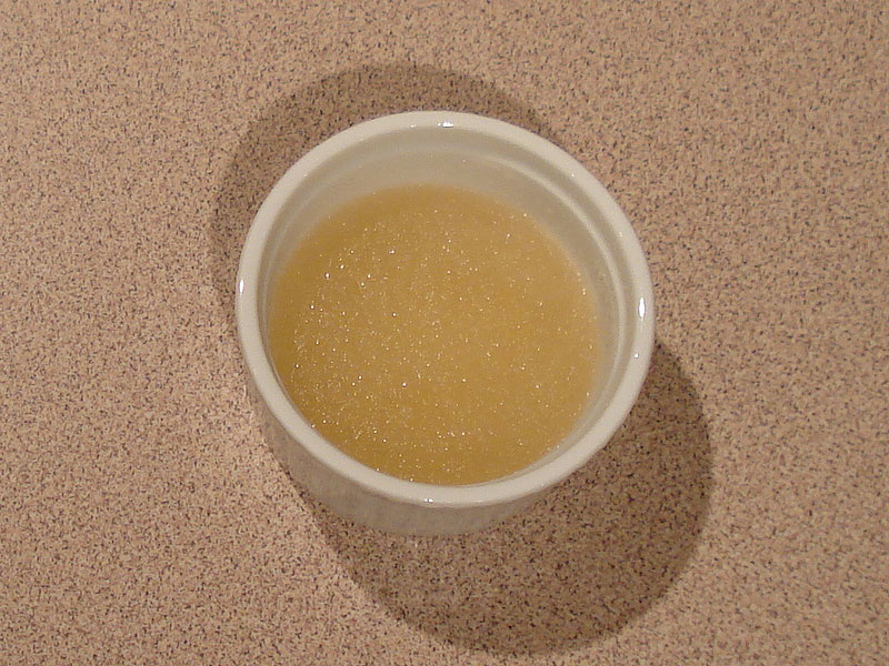 While the syrup is heating, sprinkle the gelatin over the water and let it sit so that the gelatin blooms.