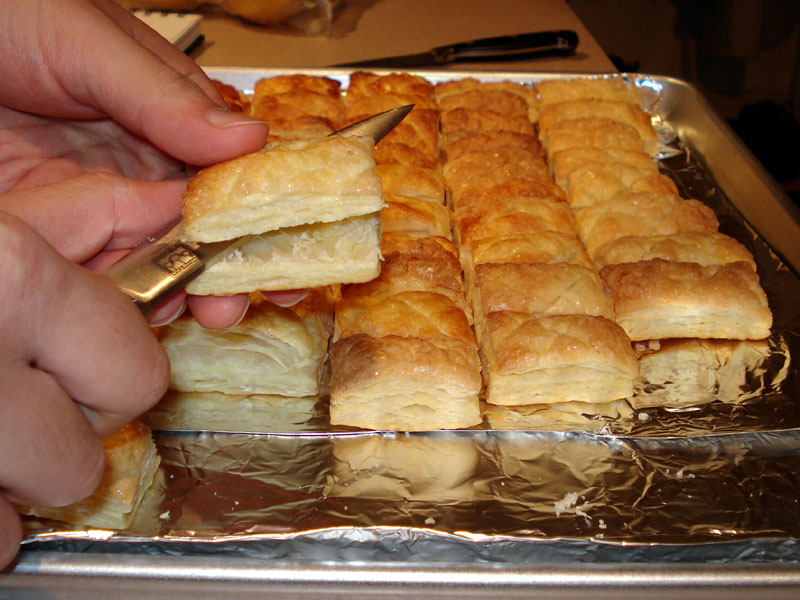 Trim the edges of the sheet with a sharp knife to allow the pastry to rise better. |
