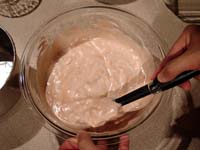It doesn't have to be well mixed yet since we are going to fold in the cream next. |
