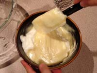 Mix the chopped fruit into the milk/egg mixture then allow it to cool.