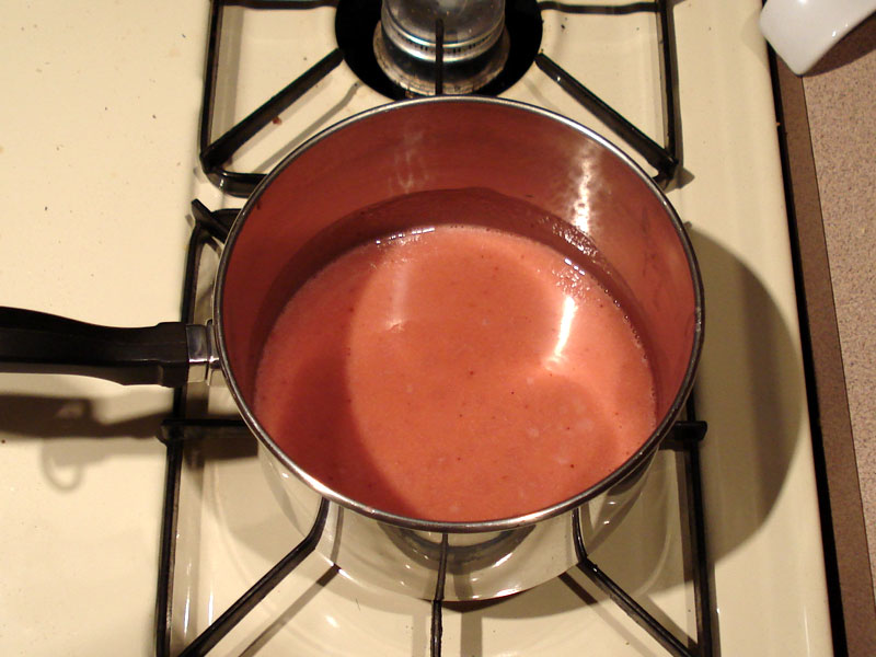Heat 1/4 cup cream and 1/2 cup of the fruit syrup over low heat in a small heavy bottom sauce pan to avoid burning.