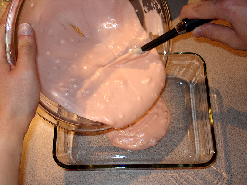 | Pour the mixture into a baking pan and chill until set (at least 4 hours). |