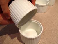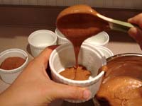 Using a spoon, drop the batter into the ramekins until 1/2 - 3/4 full.