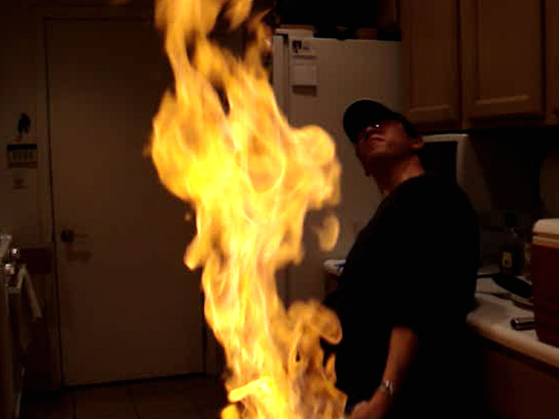 Before attempting this recipe, have the following safety equipment ready: A stick lighter to light the cognac from a distance, a pot lid to put out a pan fire and a fire extinguisher, just in case. |