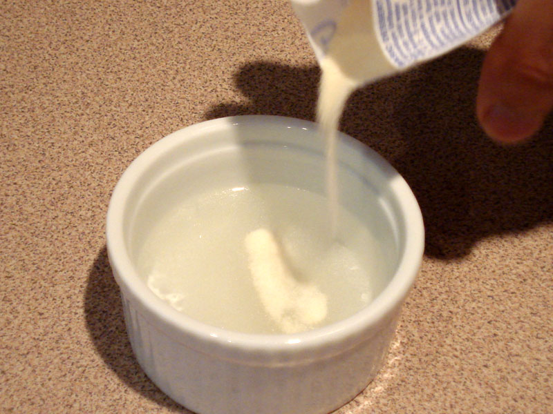 | Put 1/4 cup water into small bowl and mix in the gelatin so it can bloom. Set aside. |