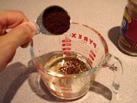 | Mix the rum with 1/4 cup water and the instant coffee. You can microwave it for 30 seconds to warm it up if the coffee doesn't dissolve completely. Set aside. |