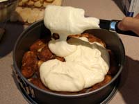 If using a spring form pan, you can remove the form just before serving. Cut around the edges with a knife (plastic if your pan is non-stick) then carefully remove the form.