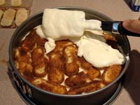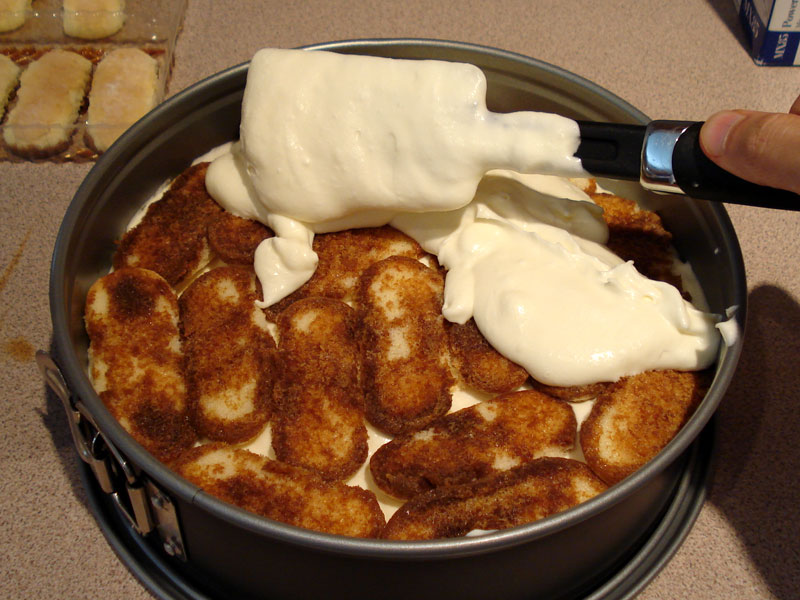 Line the bottom of a cake pan (or whatever you want to serve in) with one layer of soaked lady fingers.