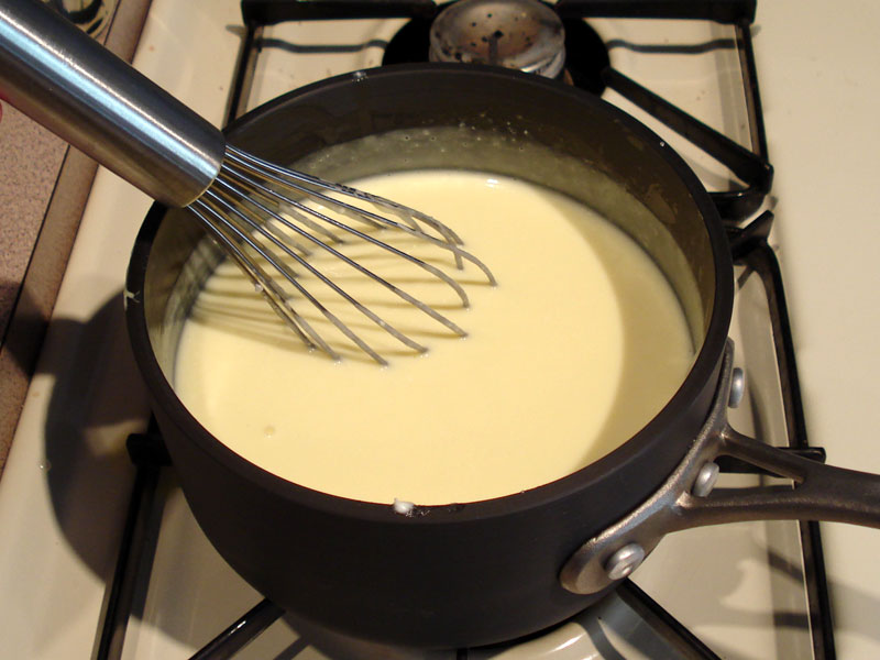Slowly pour the rest of the milk in, whisking constantly until smooth.