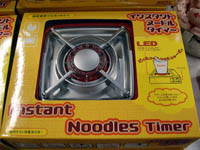I did find this fun noodle timer though. When making instant cup ramen, fill the cup with boiling water and place on the timer. In 3 minutes it will make the sound of a tea kettle that is boiling. Silly, but cute. |