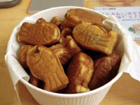 This are tastly little fish shaped manju. These were filled with custard, chocolate, pumpkin, red bean and others. 35 pieces (5 * 7 flavors) for ¥1000 |