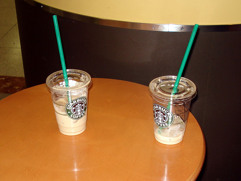 I don't understand why, but Japanese people drink very little. At Starbucks the tall is only about 6 ounces, but still costs over $3. In this case the cup is half full of ice, yet the customer still didn't finish the drink! They must have drank a mere 2 ounces and then left the rest! |